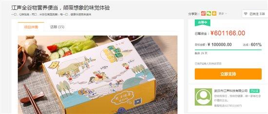 自2017年11月9日,江声科技全谷物营养便当正式登录苏宁众筹开始,3小时之内众筹金额高达20万,至今不到48小时,众筹金额一路飙升,势不可挡,已经成为苏宁众筹平台人气爆品。