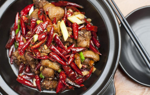 歌乐山辣子鸡 歌乐山辣子鸡是经典的川渝地区的特色传统名肴,因缘于重庆歌乐山而得名。此菜成菜色泽棕红油亮,麻辣味浓。咸鲜醇香,略带回甜。一般以鸡为主料,加上葱、干辣椒、花椒、盐、胡椒、味精等多种材料精制而成,营养丰富,味道鲜美,虽然是同一道菜,各地制作也各有特色。