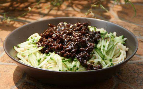 正宗老北京炸酱面 炸酱面是北京有特色的食物,由菜码、炸酱拌面条而成。将黄瓜、香椿、豆芽、青豆、黄豆切好或煮好,做成菜码备用。然后做炸酱,将肉丁及葱姜等放在油里炒,再加入黄豆制作的黄酱或甜面酱炸炒,即成炸酱。面条煮熟后,捞出,烧上炸酱,拌以菜码,即成炸酱面。正宗老北京炸酱面的特色在于酱料的炒制,蔬菜和肉类的奇妙组合,完美地传承了老北京底子,深受国内外面食爱好者喜爱。