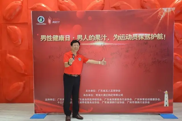 大漠红公司董事长与广东省五人足球协会会长 这是青海大漠红枸杞有限公司连续第4年举办世界男性健康日活动,本次活动借男性健康日的契机交流运动与营养话题,唤起社会对运动员健康的关注,共同预防运动损伤。