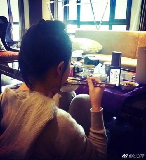 | 刘亦菲吃饭猛盯美食照片解馋:假装自己吃的很好