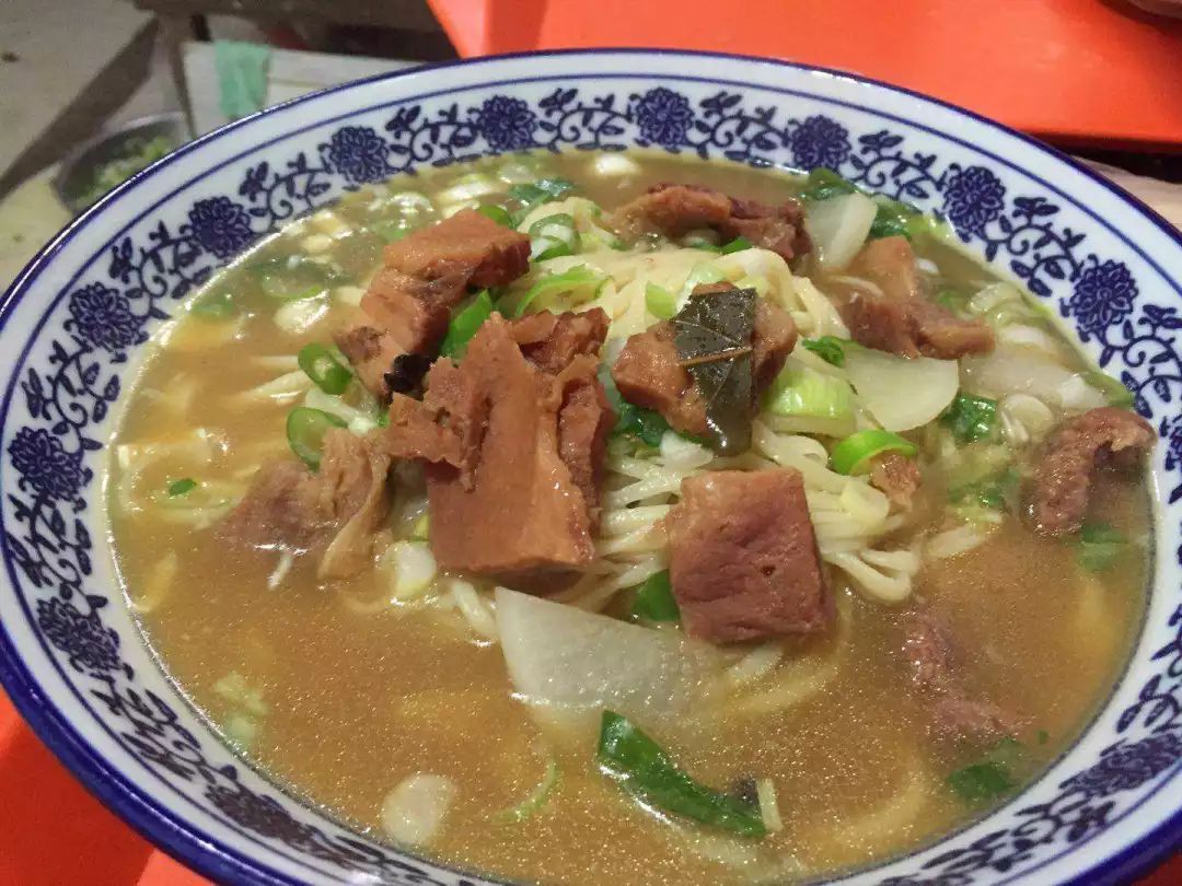 两勺骨汤加上一份剔骨肉,撒上一把葱白碎。成就了一碗香醇实惠的摔面。