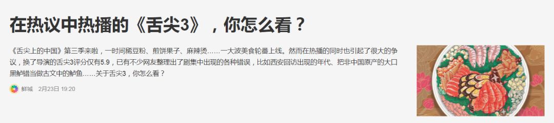 中国日报 为您的资讯保鲜 盼望着,盼望着,新年来了,《舌尖上的中国3》也终于开播了。时隔四年,这部让观众攒足了口水的纪录片也再次被推上了热搜……不同的是,这次的《舌尖3》成了大家的“吐槽大会”,很多人觉得这档节目再也不是以前的味道了。