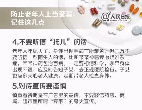 市场监管部门提醒广大消费者,想避免家中老人在不法商家手中流失养老钱,子女或亲友可以尝试以下方式: 查 提醒长辈警惕各种体验式销售,不能盲目听信明星、专家解说,定期带长辈去正规医院体检,用“白大褂”的权威驳倒不明商家;