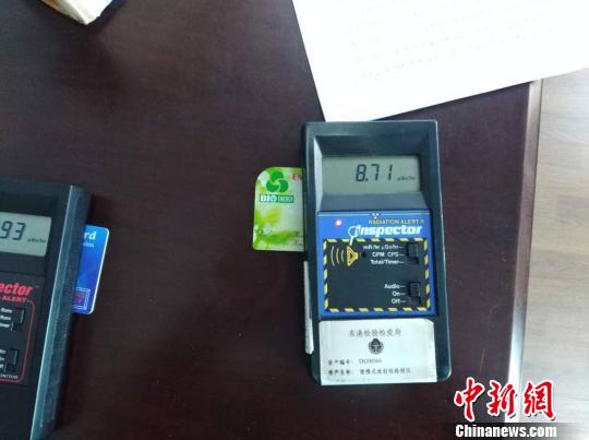 中新网大连3月20日电 (记者 杨毅)辽宁检验检疫局20日对外发布消息称,辽宁东港检验检疫局近日在东港口岸首次截获一批“能量保健卡”,该批“能量保健卡”由韩国仁川-中国东港“东方明珠轮”的入境旅客携带,共170张。该旅客在通过口岸旅检通道“行人放射性监测门”时发生报警,后经进一步检测,其随身携带“能量保健卡”的γ剂量率高达21.48μSv(放射单位)/hr(小时),为东港地区本底值179倍。
