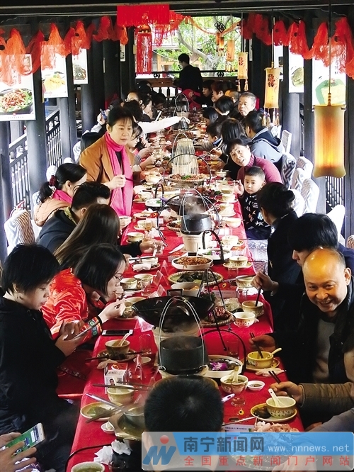 游人在长桌宴上品尝到地道的广西非遗美食。记者 赖有光 摄 你知道广西有多少种非遗美食吗?你知道这些美食是如何制作的,又蕴含着哪些流传已久的动人故事吗?昨日,由广西博物馆牵头成立的广西非遗美食展示馆在民族文物苑正式挂牌成立,今后将成为市民们品尝和了解非遗美食的好地方。 广西非遗美食是岭南文明的历史沉淀,也是广西民族传统文化的瑰宝。这些非遗美食的生成、发展、进化、流传、积淀,汇聚了广西民族文化的认同感和历史感,承载了民族的记忆和生活方式。广西非遗美食展示馆正是以非遗美食为代表,保护传承为目的打造集美食与文化于一体的非遗美食平台。 非遗美食好不好吃自然是大家最关心的问题,为了丰富众人舌尖上的味蕾,展示馆在新年第一天重磅推出了非遗美食长桌宴,全州醋血鸭、天等血肠、巴马火麻汤、恭城油茶……一道道热气腾腾的非遗美食让人大快朵颐。来自重庆的大学生小鄢迷上了全州醋血鸭,吃起来不仅没有血腥气,反而醇香扑鼻,鸭肉更是绵软入味,小鄢一边叹美食一边赞叹道:“大家都知道重庆美食很出名,没想到广西的非遗美食也很有特色。” 广西博物馆馆长吴伟峰表示,广西拥有很多的非遗美食,而博物馆是保护和传承文化遗产的地方,希望透过展示馆推介给来博物馆参观的游客和观众们。今后展示馆也将进一步完善各项工作,并推出更多配套活动,如打油茶、做糍粑、五色糯米饭等体验互动活动,让非物质文化遗产融入广大群众的生活之中。(记者 陈蕾) |
