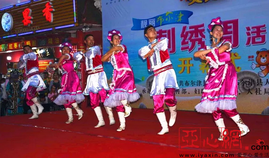 亚心网讯(通讯员 张乐)布尔津县零距离 昨天八月的童话边城布尔津色彩缤纷,热情奔放,到处洋溢着喜悦。8月13日晚9点,布尔津县河堤夜市人头攒动,热闹非凡。第三届“童话边城 布尔津味道”美食节——靓丽布尔津刺绣周拉开帷幕。各地游客齐聚,体验游牧民族游走在指尖的刺绣技术,体会刺绣文化历史底蕴。