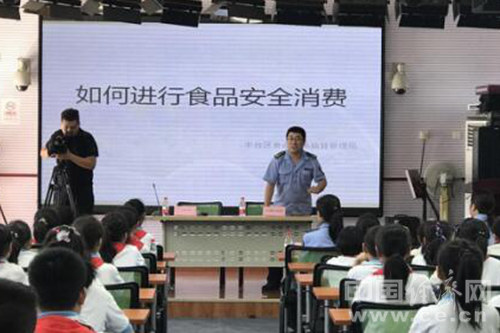 | 经济日报-中国经济网北京9月5日讯 “小朋友,你们仔细看看这个饮料瓶上的名称,它叫‘旺好牛奶’,不是我们常说的‘旺仔牛奶’,那遇到这种冒牌食品咱们能随便购买食用吗?”“不能!”伴随着一声声稚嫩的童音,丰台区食品药品监督管理局举办的“食品安全开学第一课”活动正式拉开帷幕。9月5日,丰台区卢沟桥乡食药安委的工作人员走进丰台区小井小学,为百余名学生和家长代表送去了一道丰盛的“食品安全知识大餐”。