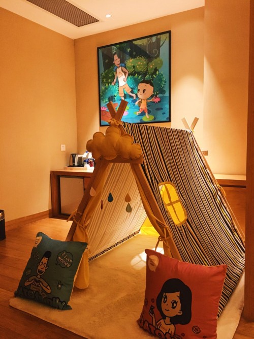 除此之外,酒店还拥有驴小玩、大头的家、海底小纵队三个主题的家庭亲子客房和丰富的儿童游乐设施;温顺美丽的孔雀家族为悠然自得的度假时光增加一抹亮色,成为酒店的打卡之处,同时丰富的手工活动-竹编课程、绘画课程等满足家庭及休闲出游的不同需求。