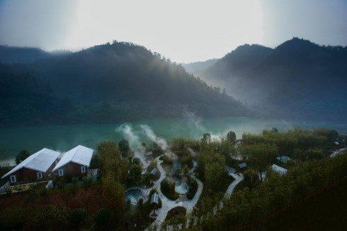 露天泡汤 安吉君澜露天石语汤池依山傍水而建,私密性极强,拥有大小不一功能各异的汤池17个,包括“艾叶汤”、“人参汤”、“芦荟”等,部分汤池带有按摩冲浪功能。泉水取自地下洁净无污染的基岩深处,富含多种对人体有益的矿物质及微量元素,对调节身体机能,促进血液循环和新陈代谢有明显的疗效。夕阳西下,在这里一边享受泡汤带来的惬意与舒爽,一边欣赏水天相接的日落美景,忘却日常烦嚣,感受这里的极乐时光。 两山之源-余村 由酒店出发20分钟即可到达‘青山绿水就是金山银山’的发源地。清澈的余村溪,从村子西侧峡谷高处的冷水洞蜿蜒而下,潺潺溪水,用自己的方式把余村的故事带到五湖四海。自东向西穿过村子,在村西山谷一处高地,来自全国各地的考察团被带领到这个已经被改造成景点的‘矿山遗址’,聆听讲解员讲述这里斑驳的往昔。曾经的水土流失、扬尘四起、黑雾冲天、粉尘蔽日,恶劣的生态环境使所谓的矿山经济到了难以为继的地步,经过12年的坚持不懈,余村在探寻绿色发展新模式的过程中取得了巨大的成功,现在这里青山环绕,漫山翠竹,小溪潺潺,鸟语花香。
