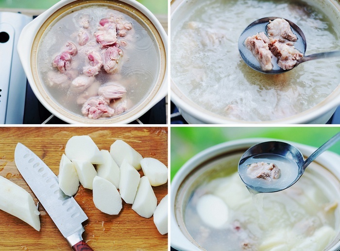 [食材]:羊腿肉750g、羊棒骨750g、精盐1茶匙、山药400g