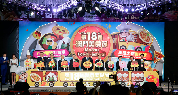 | 中央政府驻澳门联络办公室经济部部长刘斌参加活动。 今年美食节邀请100多家本地特色餐饮企业参与,展现澳门独有的多元饮食文化,同时邀请新加坡餐饮美食商号来澳打造别具特色的“新加坡村”,丰富美食节异域特色。活动组委会希望展现澳门独有的中西汇聚多元饮食文化,发掘更多餐饮创意,丰富澳门“世界美食之都”的内涵,同时带动本地中小餐饮企业拓展国际市场,将本地餐饮商号的特色展现给来自世界各地的旅客及餐饮业同仁,助推澳门世界旅游休闲中心建设。 张荣顺副主任出席第18届澳门美食节开幕式。(图片来源:澳门特区政府新闻局) 本网讯 11月9日下午,中央政府驻澳门联络办公室副主任张荣顺在西湾湖广场出席第18届澳门美食节开幕式,与澳门特区行政长官崔世安、澳门特区政府社会文化司司长谭俊荣、澳门中华总商会理事长高开贤、澳门基金会行政委员会主席吴志良等共同主礼。 本届澳门美食节由澳门餐饮业联合商会主办,澳门饮食业工会、澳门烹饪协会等协办,澳门基金会、特区政府旅游局和民政总署支持。本届美食节以“百变心情好煮意、美食之都誉全球”为主题,吸引本地居民和来澳旅客一同从本土传统美食中寻找更多的餐饮、厨艺创意。