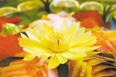 莲花宴年年有新意,焖蒸炖煮,可汤可肴:温水浸莲花花瓣,可沏出一杯清雅幽香莲花茶;莲花水浸鸡入味,再在莲花水中加入鲜莲子和莲花熬煮出汁淋于鸡上,莲花还可切丝作伴碟随鸡肉共食,制成清甜可口“莲香白切鸡”;莲花水加入糕点中可脱落出“莲花糕”;莲茎表皮撕去,飞水后上汤烹制,配冰菜食用相当清爽…… 以上种种鲜花入馔,有香有色有味有文化有健康,口齿清香中浸透的都是花城广州人的智慧。 护花使者:陈艾森 跳水运动员里约奥运会“双料”冠军