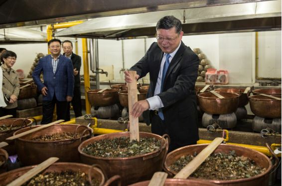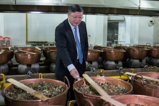 11月8日,岳阳医院膏方开炉仪式启动。依托雄厚的中医药临床实力,岳阳医院保持了铜锅膏方传统制作工艺,自上世纪70年代末起,已经连续40年坚持在每年入秋之后开设膏方门诊,并形成了规范的炮制流程和标准,“岳阳膏方”已成为享誉沪上的传统中医特色品牌之一。 岳阳医院院长周嘉为第一炉膏方点火。新华网 严晓瑜摄 目前膏方养生在我国南方地区较为普及,在上海更有“宁得一料膏方、不用金玉满车”之说,广受沪上百姓的欢迎。岳阳医院是上海地区唯一具备膏方独立制作加工能力的中医医院,每年都要制作两万多料膏方,今年膏方门诊预约已过万人次。膏方的配制对处方医师的要求非常高,必须坚持整体考量、调补合度、补泻兼顾的原则。朱南孙等一批名老中医坐诊岳阳膏方门诊,保证“一人具一方,万人不重方”。 第一批膏方药材入锅煎煮,岳阳医院院长周嘉在火炉边不断搅拌。新华网 严晓瑜摄 上海中医药大学附属岳阳中西医结合医院院长周嘉说,岳阳医院仍保留着传统的膏方制作工艺,传承了精制铜锅等用具和方法,由一批资深制药匠师主持,采用传统制作工艺,按照配方、浸药、提取、浓缩、收膏、分装、凉膏等七个步骤,“一方一锅”定制加工,确保每料膏方的品质。 百口紫铜锅开炉,黑色汤汁在锅里翻滚跳跃。新华网 严晓瑜摄 随着炉火越来越旺,膏方制作室室内温度达到40℃。“很多医院的膏方都是流水线上操作,电脑控温,一体成膏,效率是高了,但老中医的传统也慢慢流失了。”近40年工龄的老药师陈伟明介绍,药物经过六个小时的浸泡之后,就可以开炉练膏了。中药饮片在紫铜锅里要经过两次煎煮,提取有效成份,合并两次药汁放入容器沉淀。提取药液过滤后,另外加入细料,加热至沸腾。收膏阶段,浓缩药液中要加入胶类、糖类、黄酒,不断搅拌,经过过滤后再倒入锅里继续加热搅拌直至呈线状,再加入细料,充分搅拌成膏滋,最后经过分膏、凉膏的过程,一料膏方才最终完成。 最终出炉的是一人一方、原汁原味的膏方。新华网 严晓瑜摄 当下正是适宜服用膏方的季节,岳阳医院药师黄瑾强调,膏方一般由几十味药味组成,每一料膏方均是“一人一方”,按照个人体质配置而成。只要根据各个季节的特点,掌握气候的寒热温凉,按照人体在四季相应的阴阳气血状态,适当调整润养滋治的重点,选择相应的药物或配方,做到补而不腻、补而不滞,膏方也可以一年四季使用。 |