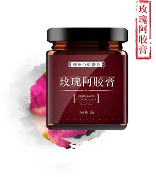 玫瑰阿胶膏中大枣、甘草、阿胶、龙眼肉、枸杞子、黑桑葚、酸枣仁补脾益气,滋养营血,养心安神为君药,奠定了补气血,调精神的基础;干姜、肉桂、肉豆蔻、玫瑰花温中散寒,理气止痛为臣药,对于阴虚寒邪引起的脘腹疼痛,行经腹痛等症都有一定的改善调理作用;藿香、香薷、砂仁芳香化湿,和中止呕为佐药,得以改善人体的脾胃功能;桃仁、紫苏子行气活血化瘀,润肠通便为使药,使体内垃圾顺畅排出。上药相互协调共同实现补气血,安精神,散寒邪,暖宫腹,去湿气,和脾胃,化瘀血,润肠便的作用。