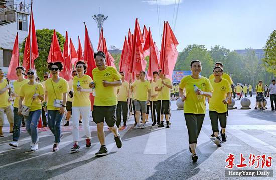 掌上衡阳客户端衡山频道8月11日讯(通讯员颜益平) 8月11日上午,由衡山县文化旅游广电体育局主办,衡山健步团户外运动协会承办,衡山县“创品国际建材家具城”协办的环城毅行活动,在衡山县先农花园群英广场隆重举行。衡山县县委常委、宣传部长任中元,县政府副县长陈琛等县领导到场参加活动启动仪式,并领跑徒步竞赛活动。