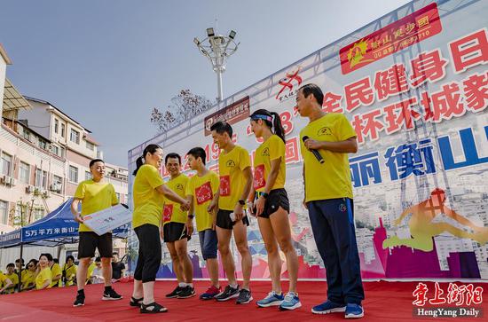 经过竞赛决出一等奖1个队,二等奖2个队,三等奖3个队,优胜奖4个队。据悉,当天凡参加者都免费获得了印有衡山健步团团徽的精品T恤1件和精美纪念品1个。