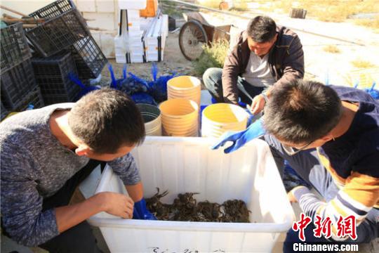新疆兵团第十师一八三团养殖户分拣螃蟹,喜笑颜开。(资料图) 赵永梅 摄 中新网新疆北屯10月12日电(吴彩霞)前不久,养殖户李燕1000公斤捆绑包装后的精品螃蟹,从新疆阿勒泰空运途经乌鲁木齐中转,3个半小时后抵达上海。北屯和上海,因为一盘麻辣香蟹,而有了饮食上的关联。 今年,李燕养殖打捞出的15吨精品螃蟹,有10吨就是以这样的方式“横行”到上海人的餐桌上。 “由于十师以前养殖螃蟹相对粗放,品质一直提不起来。只有让螃蟹吃好喝好,精细喂养,才能长得体壮膏肥。”李燕说。 李燕在新疆生产建设兵团第十师一八三团东岗湖养殖螃蟹已有五个年头,走精养路出精品螃蟹是李燕的养殖目标。她承包了800亩水塘,放养的蟹苗吃的都是高级营养品,新鲜的浮游生物、苞谷是螃蟹每餐必吃的,不但蛋白质含量高,还能强筋壮骨。