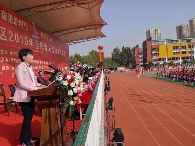 由卧龙区青少年宫组织编排,南阳市向阳幼儿园、南阳市第十一小学校、南阳市第十七小学校、南阳市第二十三小学校的120名教师共同参与演出的歌伴舞《卧龙腾飞正当时,首善之区创辉煌》,展示了卧龙区委、区政府围绕高质量建设具有较强吸纳集聚能力和重要影响力的大城市“首善之区”的目标定位,带领全区广大干部群众,大力实施“三网四化五极”引领战略,深入开展“不忘初心、牢记使命”主题教育活动,各项事业蓬勃发展,经济社会大局稳定的精气神儿。