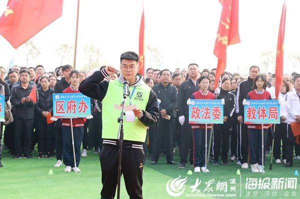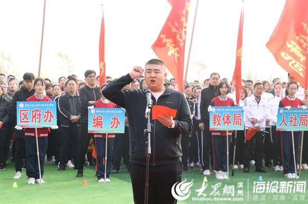 裁判员代表宣誓 滨城区委副书记、区长张瑞杰出席开幕式并宣布滨城区第九届全民健身运动会开幕,滨城区委副书记张博致开幕词,滨城区副区长袁俊英主持开幕式。 张博指出,近年来,滨城区坚持将发展体育事业作为一项重要的民生工程,融入“六个滨城”建设总体布局,深入开展全民健身运动,大力推进竞技体育发展,不断完善体育基础设施,全区体育事业发展呈现出更加良好的局面。体育惠民工程提档升级,“10分钟健身圈”逐步形成;马拉松全国邀请赛、全民健身运动会接续举办,引领各项群众体育活动蓬勃开展;校园足球发展迅速,创建全国青少年校园足球特色学校(园)24所,2018年在各级各类比赛中获得冠军23个。