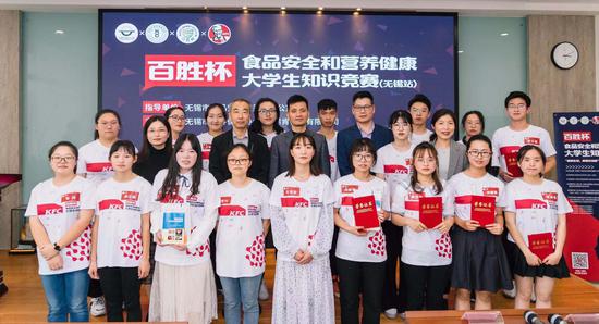 无锡市营养保健协会周伟杰会长认为,普及营养知识、推广合理膳食对当代年轻人非常重要,可以为实现中国的“营养梦、健康梦”助力。他表示:“现在的年轻人喜欢吃外卖,对于普通人来说,塑造自主自律的健康行为,第一条就是引导合理膳食。此外,做到吃动两平衡也很是关键。” 来自江南大学、无锡太湖学院、无锡商业职业技术学院、无锡卫生高等职业技术学校、无锡旅游商贸高等职业学校的六大战队参赛选手青春亮相、信心满满、参加最后的角逐“最强大脑”营养达人知识竞赛,在食品安全与营养健康知识领域一决高低。 此次知识竞赛采用团队赛形式,每队派出3位参赛成员出战,以六进三、三进二、二决一的竞赛机制进行角逐,江南大学医学院以卓越的成绩获得冠军!高校之间的PK不仅是一场专业的学术交流,也是同学们互相了解、提升的一次机会,是一次难忘的经历。同学们纷纷表示能把所学专业和知识竞赛相结合,能把课本知识运用到实际生活中,能把健康知识和生活方式传递给大家是一件特别有意义的事情。 肯德基所属的百胜中国一直把食品安全放在一切工作的首位,把推动饮食健康、提倡平衡膳食当作是自己义不容辞的社会责任。除了不断研发符合中国本土口味的产品,丰富消费者选择搭配以外,百胜中国多年来持续支持营养与膳食科研领域的发展,并长期开展及支持营养健康和食品安全科普活动,回馈社会。