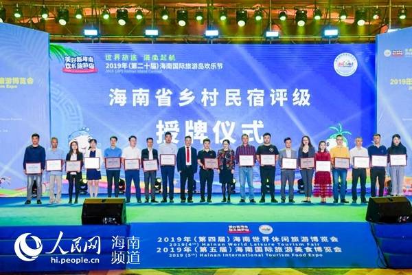 据了解,2019年(第四届)海南世界休闲旅游博览会和2019年(第五届)海南国际旅游美食博览会是2019年(第二十届)海南国际旅游岛欢乐节主要活动之一,将通过展览以及一系列精彩活动为国内外旅游业界提供业务拓展及产品采购的交流平台。同时,这也是推进海南国际旅游消费中心建设,创建国际全域旅游示范区、打造国家体育旅游示范区建设的具体举措。 开馆仪式上,海南省政府副秘书长司海英,海南省旅游和文化广电体育厅厅长孙颖、副厅长曹远新对获评“金宿”称号的4家民宿和获评“银宿”称号的18家民宿进行授牌。据了解,2016年,海南被确定为全国首个“全域旅游创建示范省”,随着全域旅游工作的不断推进,一批富有特色的乡村民宿涌现,为进一步带动海南省乡村民宿规范、有序、健康发展,海南省旅游和文化广电体育厅对省内的优质乡村民宿进行服务质量评定,评选出三亚宿约107民宿、琼海潭门无所归止精品民宿、海口印象海上花客栈、疍家故事船屋民宿等4家“金宿”,以及海口连理枝民宿、海口人民骑兵营精品民宿、鹿饮溪民宿等18家“银宿”。