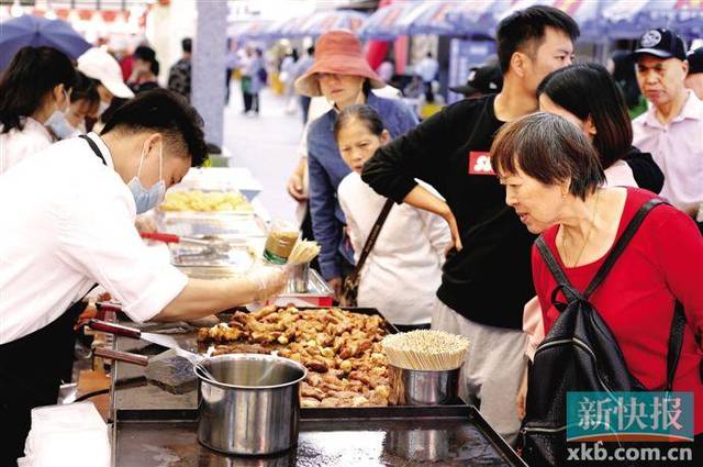 ■广州市民欣赏、挑选美食。 去年新增的“米其林专区”受到众多市民的追捧,广州地区入选2019广州米其林指南、获得米其林餐厅称号的企业在这里亮相。而在“庄臣美食坊”,著名美食家庄臣利用“老广州餐饮”品牌,组织策划各种饮食文化推广活动,展销传统广州美食。市民在这里也可以品尝到各种广州美食,如爽鱼皮、盲公丸等。 今年美食节的特色之一是首次以“展+会”的方式推进粤港澳大湾区美食城市品牌建设,“港澳美食汇”等企业组团参展。 在香港张珍记档口前,挤满了前来尝鲜的食客。在这里,鲍鱼、海参、鱼翅、花胶、佛跳墙及盆菜一应俱全,墨鱼饼、咖喱鱼蛋、香港仔艇仔刀切粉、芝士焗榴莲冒着香气和热气,十分诱人。张珍记的阮女士介绍,这些都是香港特色美食,其中,鲍鱼边、碗仔翅和花胶猪红汤在本届美食节最受欢迎。 在澳门盲公刘美食坊,“舌尖在跳动”“吃货们快点啦”的宣传语非常直白,很接地气,一群老人家用粤语念道:“正唔正?一流!”引来现场阵阵欢笑声。 在福临门大酒楼的展位前,香港名厨陈宗耀露出了拿手绝活,现场制作了“不一样”的乳鸽。“这是几十年的老配方,通过现代方法进行改良,乳鸽的皮像玻璃一样脆。”说起传统的广府美食,陈宗耀滔滔不绝。 五华美食让食客“返寻味” 广州市番禺区对口帮扶梅州市五华县,在本届美食节上,来自五华县的美食受到不少广州市民热捧。 在番禺对口帮扶五华农特产品馆,广州不少市民竞相抢购产自五华县河东镇茶亭岗的沙田柚。此外,梅州客家盐焗鸡、油茶籽油、棉洋琴江腐竹、咸鸭蛋等也深受广州市民青睐。在五华客家美食档口,盐焗鸡、酿蛋角、娘酒鸡、猪肉汤、烧番薯、客家三丸等客家美食也受到热捧。一名来自江门开平的市民边品尝盐焗鸡边对新快报记者说,在广州无鸡不成宴,而盐焗鸡是不少老广的至爱,在这里品尝到最正宗的客家盐焗鸡,让他食过返寻味。