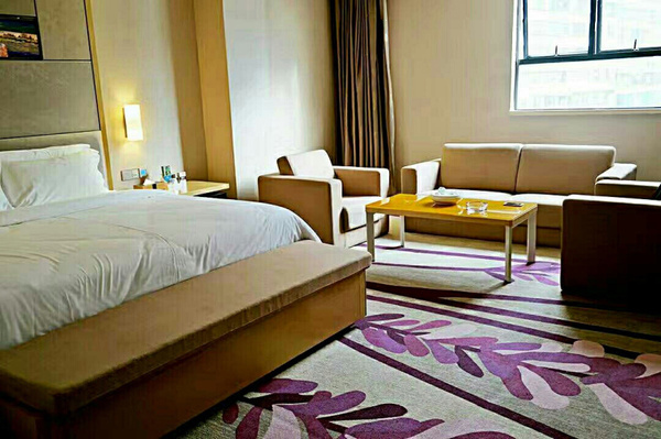 豪华套房的房间很大,有点类似于一房一厅的格局,是那种舒适的公寓型。一张舒适的大床,床尾部分的模式和高星级酒店的床铺一致。而靠近窗户的位置,则有一个大大的沙发区域,桌上摆放着简单的茶具,即使是商务会谈,这一间也很足够啦! 麗枫酒店(汕头珠池路火车站店)