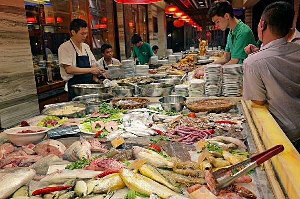 在房间里稍做休息后,也到了晚餐时间,然后选择了离丽枫酒店不远的富苑饮食做为这一站。之前有在一些推荐上看到过富苑的照片,真实到达后还真的被眼着堆满了各式美食的长桌给吸引了! 富苑饮食