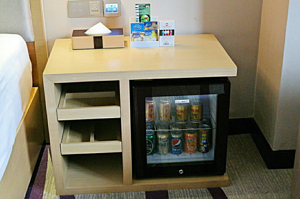 房间里有免费赠送两瓶矿泉水,如果两瓶不够喝,那就三瓶吧!但是又不想折腾跑去前台或是外面超市购买,那么房间里的自助商品就很适合啦!选择很丰富,不公有小冰箱里冰爽的王老吉、可乐等饮料,也的薯片、饼干等小零食。写字桌上有一张价目表,各商品的价格和市场价也都差不多。 麗枫酒店(汕头珠池路火车站店)