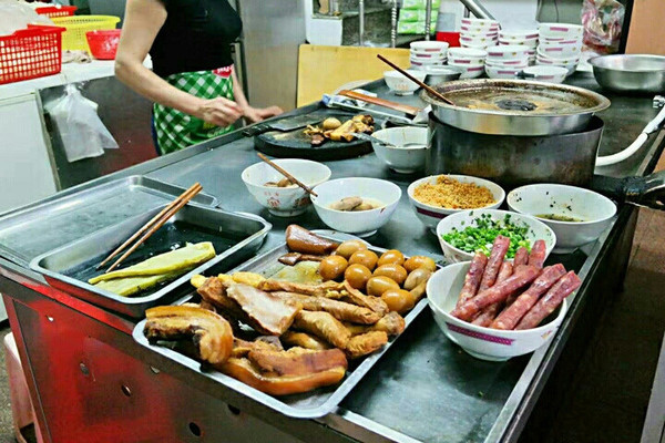 粿汁是潮汕地区的特色美食,走在路边可以经常看到这样的小店,同益路的家据说就是当地很有名气的店。粿汁的特色在于配菜,也就是浇头,选用的是各式卤料,比如卤五花肉、卤猪肚、卤豆腐……再加入糯米制作的粿条,浇上卤汁。价格根据所选配菜,在10--20元一碗。 广场潮州粿汁