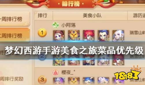 梦幻西游手游美食之旅怎么进入排行榜?本周是美食之旅的最后一周了,关于这个烹饪做菜,应该怎么吃,先吃什么,后吃什么,其实是很有学问的,下面小编就为玩家带来梦幻西游手游美食之旅菜品优先级推荐,一起来看看吧。