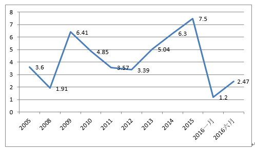 北京保险研究院 彭志勇 图二:中国历年保险资金投资收益率(%)