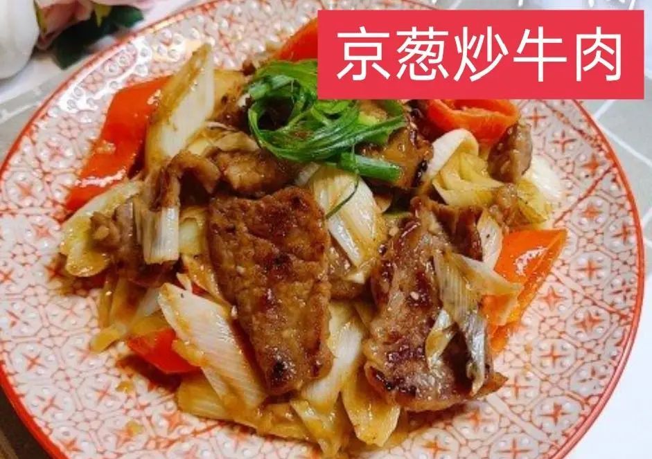 【食材】:虾肉大约10只、鸡胸两件、马蹄4至5粒或适量、葱花适量、马蹄4-5粒、胡椒粉适量、豉油适量、砂糖大约1/4tsp、盐少许、油适量 【做法】:1所有材料清洗好,先把虾肉打碎,再放入鸡胸/马蹄 2把(调味料)混合在材料内 3开炉共煎约6-7min便可完成。 第六款京葱炒牛肉