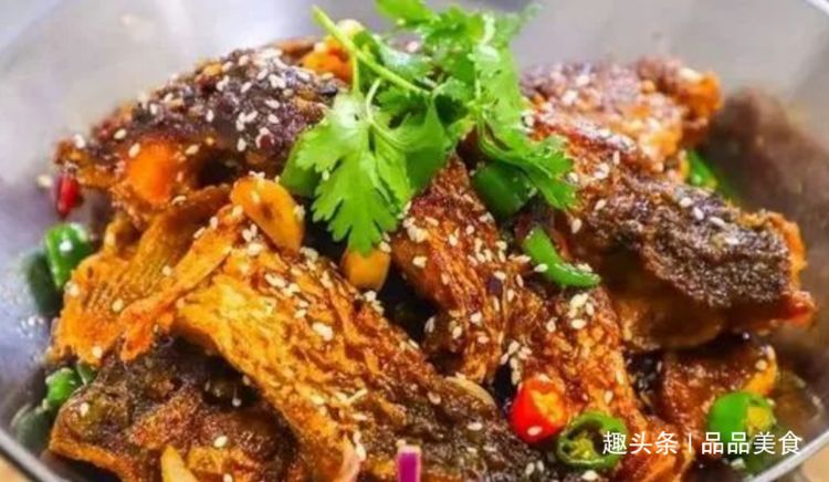 干锅鱼 材料:大花鲢魚片、白糖、老抽、醋、大青椒、芹菜、大葱、姜、蒜、料洒、鸡精、豆粉郫县豆瓣、花椒粒、花椒面 美食做法: 1、花莲魚片用料酒、花椒、姜片、豆瓣、鸡精、老抽一点、白糖、醋一点、豆粉多些拌勻腌制1小时。 2、锅里多放些油把腌制好的魚片炸制二面微黄,(多炸制一会)。 3、把炸制好的魚捞出。 4、锅里留少许油把蒜片、葱段炒香,再把切好的大青椒、芹菜翻炒断生,加入炸好的魚片轻轻翻勻撒上花椒面即可。