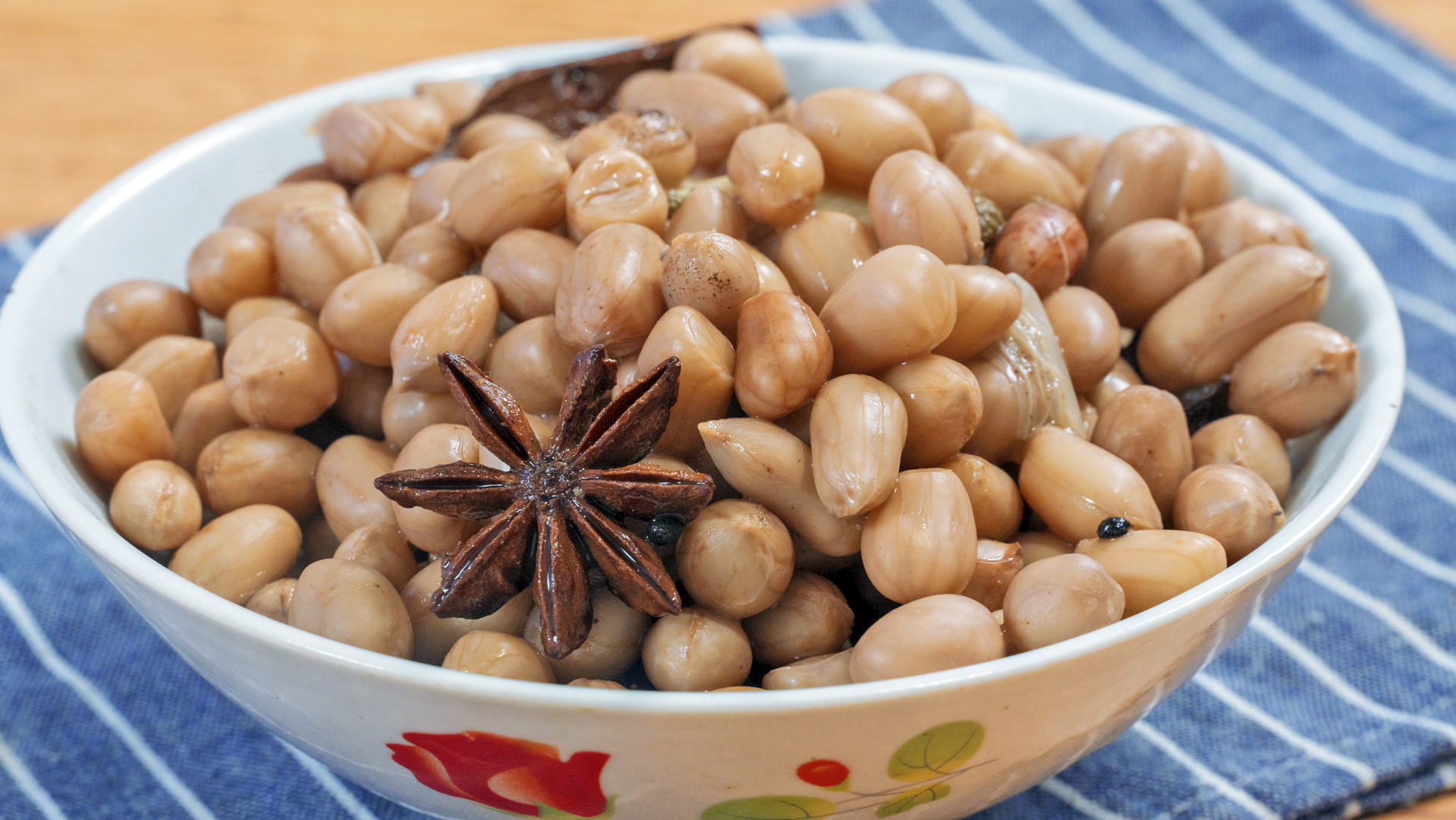 5、煮好的花生先不急着倒卤水,我们可以将它泡上2个小时帮助入味