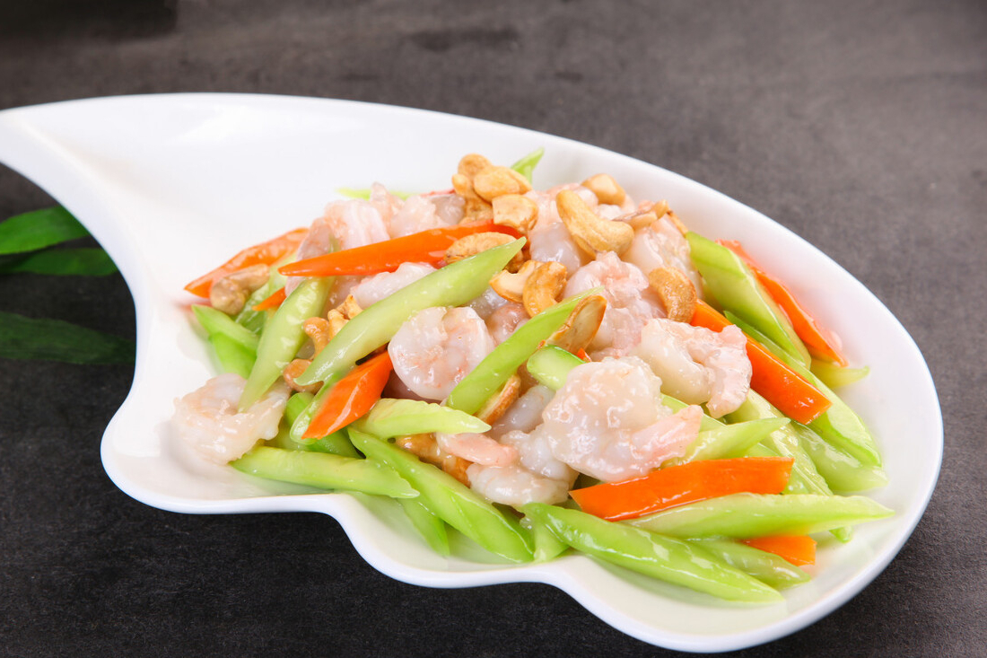 〖 食材清单 〗西芹、胡萝卜、虾仁、盐、白胡椒粉、淀粉 5、最后加入1勺生抽翻炒均匀,也可以加点鸡精提鲜,炒匀后就可以装盘开吃了。