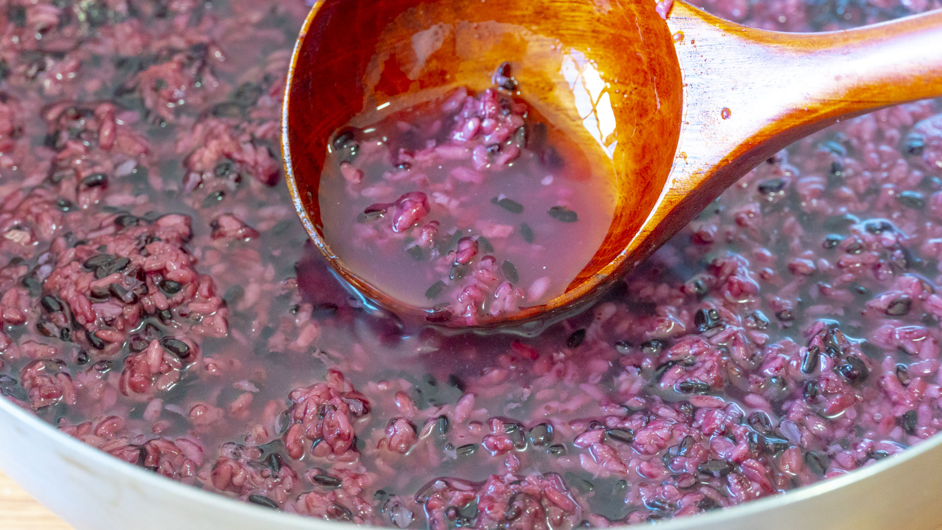 1、取一小把花椒放入碗中,冲入开水,水凉后,捞出花椒留花椒水备用; 2、泡过之后的花生变得鼓鼓的,水份更足; 健脾胃、助消化——米酒 推荐食谱【黑米醪糟】
