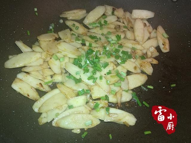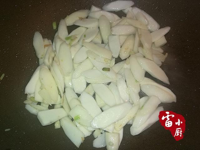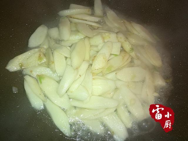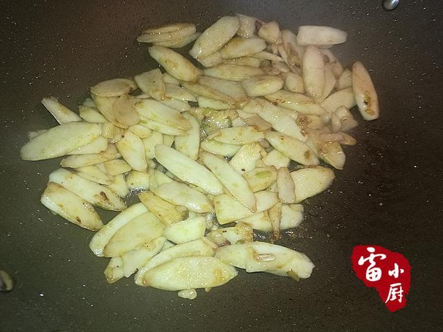 4、加入很少量的水,盖上锅盖将水煮干,(也可以不加水,炒熟的会更香)