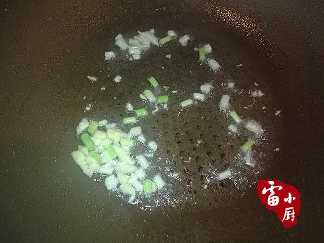 2、热锅下油,将油烧热,加入大蒜,小葱头爆香。