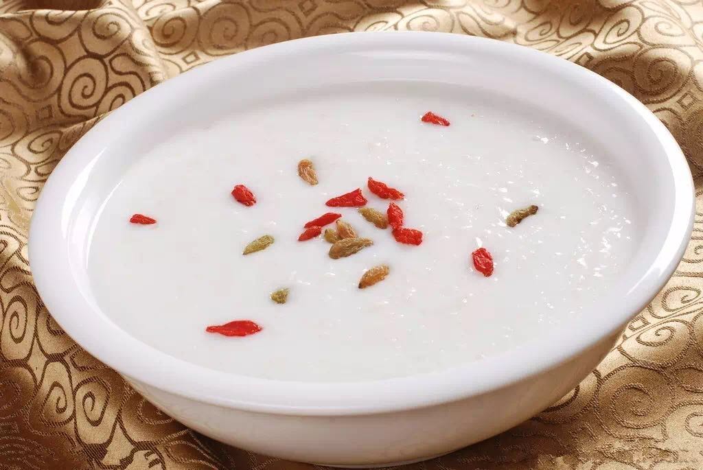 7、牛奶花生粥 百合,味甘性微寒,有养阴润肺、清心安神的功效;银耳,味甘淡性平,有滋阴润肺、养胃生津的功效;大米益气健脾,三者同煮为粥,具有润阴润燥、补肺养心、健脾生津的作用,适用于在干燥的秋季食用。
