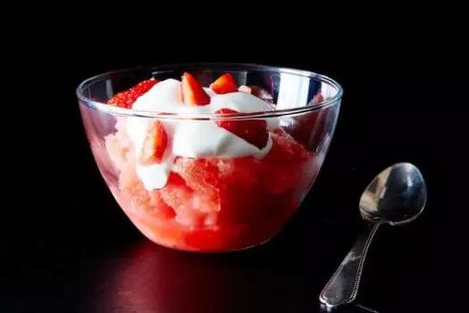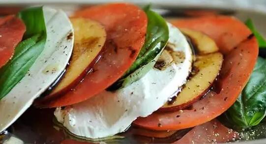 - 番茄油桃马苏里拉芝士沙拉 - 这种意大利冰糕(granita)其实更像大块的刨冰,夏天吃起来真的超级爽的。先把大约1200g的西瓜切块后,放进搅拌机/料理机打碎。再加入1/4量杯的糖,还有1/4量杯的Campari酒后,静置10分钟。把混合物倒进合适大的容器里,盖上盖子(用保鲜膜封也可以)放进冰箱冷藏。大概2.5-3小时左右,混合物有2/3结冰,就可以拿出来了。(可能我到这一步就直接吃了)拿出来并不是用来吃的,还要继续努力,用叉子把结冰的部分弄碎,再重新放进冰箱。再重复一次,最后放进冰箱冷藏。想吃的时候,再往上面放点番茄,可以浇点奶油、雪糕,也可以再倒点Campari酒~不喜欢吃西瓜的话,可以用上面那个番茄汁的配方,也可以用任何你喜欢的水果汁~ 番茄跟马苏里拉芝士的搭配,在国外很常见。这个菜谱还加了油桃,不仅摆盘看起来更美观了,口感也会丰富许多。最后再放点罗勒叶点缀一下,红绿搭配更有层次感。注意要切成薄片,摆起来才会好看哦,最后浇点橄榄油,撒点盐和胡椒就ok了,还可以在碟子旁边浇点意大利醋(balsamic)。真的是简单又好吃呀~
